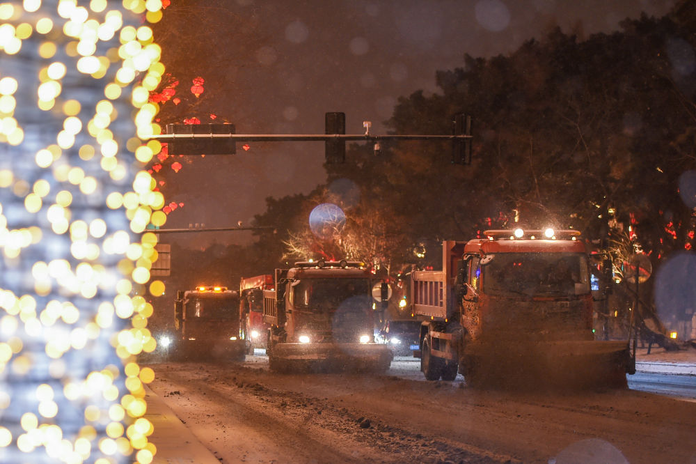 目前,全市已组建多支应急抢险队伍,储备充足的融雪剂和防滑物资,实行24小时值守备勤机制。夜色渐深,清雪车辆仍在灯光下穿梭奔忙,发动机的轰鸣声回荡在城市上空。正是这些不眠不休的守护,让风雪中的长春依旧秩序井然、温暖如常。