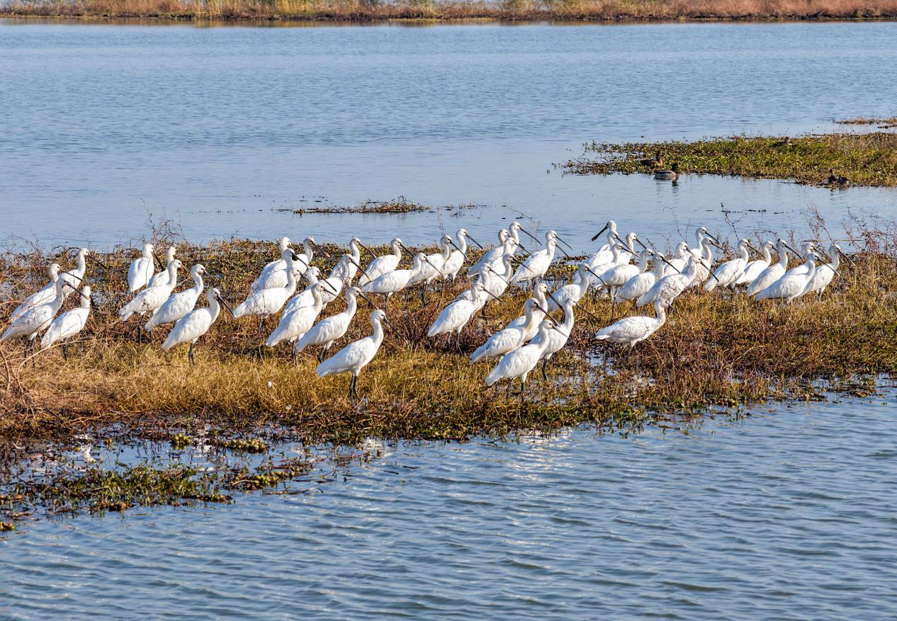 白琵鹭的到来,不仅映照出黄陂湖生态环境的向好之变,也吸引了许多摄影爱好者与游客前来静观。人们在适宜的距离外举起相机,记录下这幅人与自然和谐相生的动人画面,共同见证这片湿地焕发的生机。