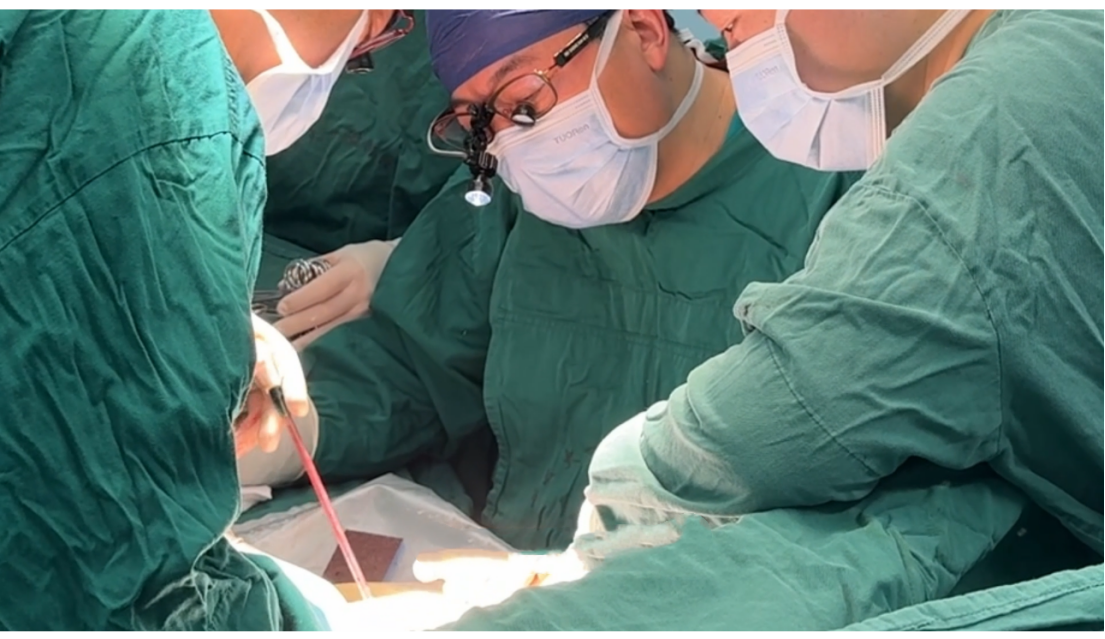 11月22日,小彩虹母女俩被推往手术间,一场持续6小时的生命接力就此展开:供肝切取、病肝切除、新肝吻合……细如发丝的缝线穿梭,细小的血管被一一连接。186.9g的肝脏从妈妈身上分离,植入到小彩虹的身体里。