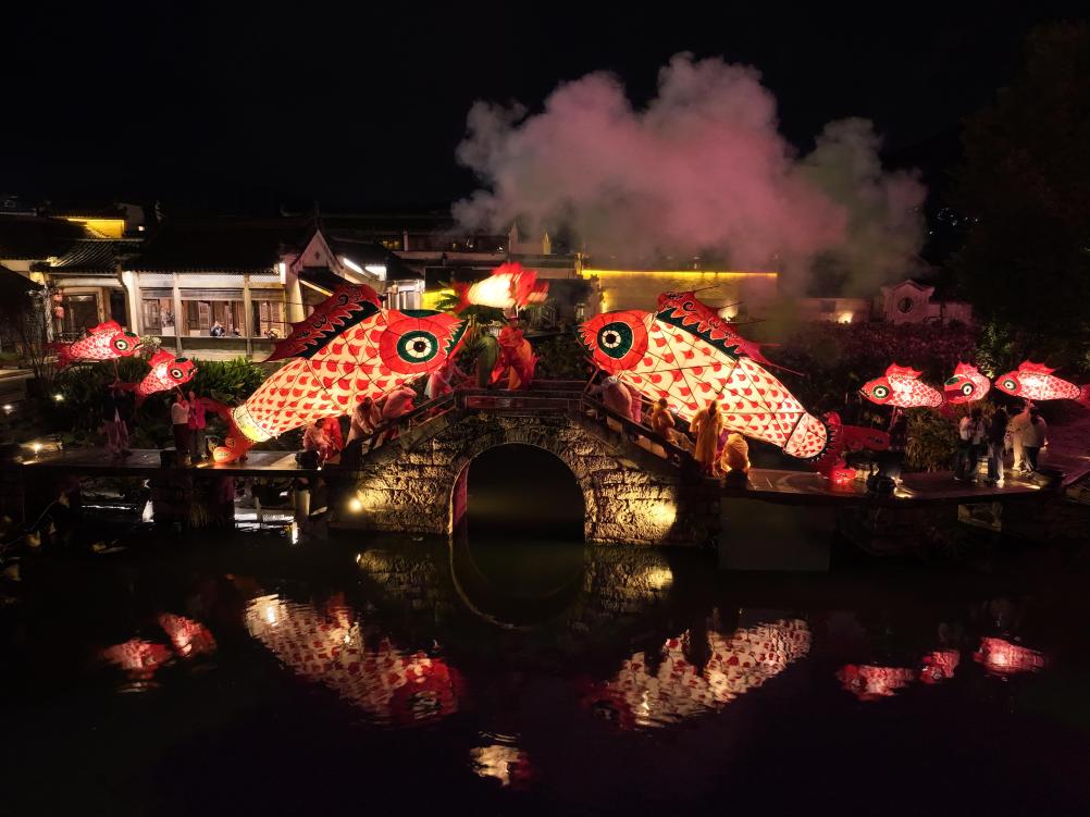 11月9日晚,一场别开生面的鱼灯巡游活动在安徽省黄山市徽州区呈坎古村热闹上演。