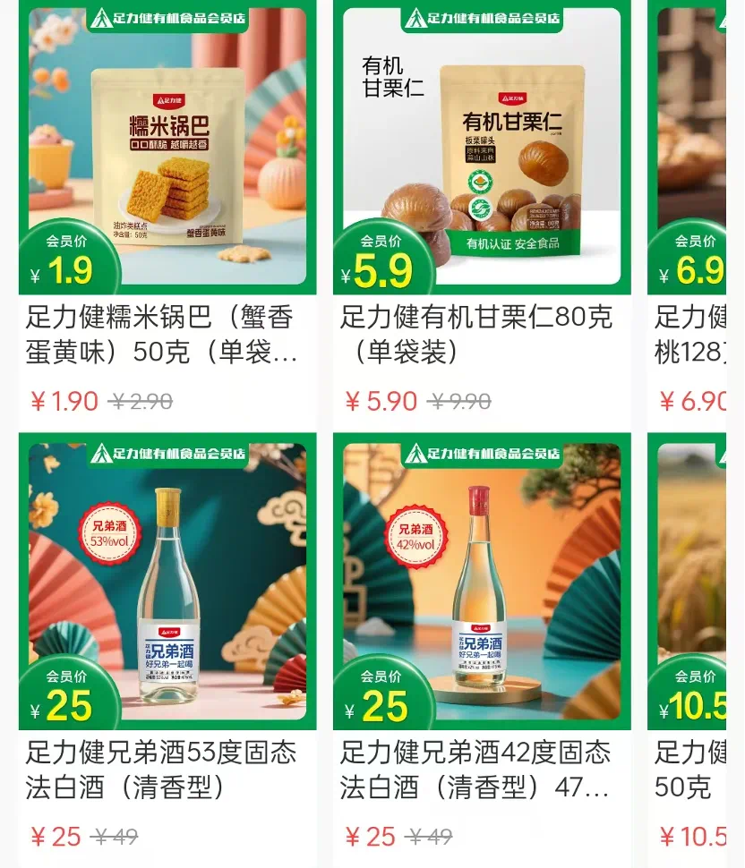 目前足力健食品产品线已覆盖零食、茶叶、杂粮等多个品类,基本满足日常饮食需求,价格极具竞争力 ——4.9元一袋的水饺、9.9元8支的糯玉米,“有机品质 +平价定位”精准击中大众对高性价比健康食品的核心需求。