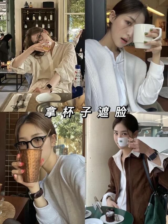 杯子挡脸也是很不错的,毕竟现在出门约会逛街,都人手一杯奶茶或者咖啡啦。