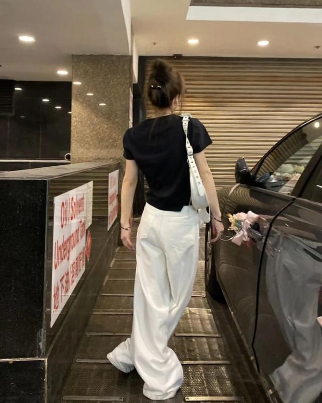 然后镜头稍微比人矮一点去仰拍,这样拍出来人和街道的比例是最好看的,也显腿长~