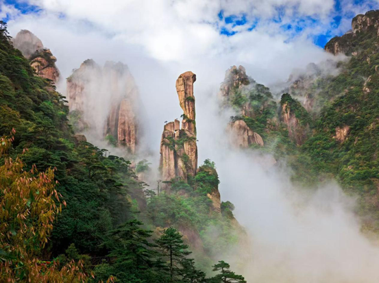 历经八亿年地质演化,三清山形成千峰竞秀、万壑嵘峥的独特花岗岩地貌,被誉为“西太平洋沿岸最美丽的花岗岩”。全山奇峰怪石多达361处,其中“东方女神”“巨蟒出山”等标志性景观惟妙惟肖,宛如立体山水画卷。世界遗产大会评价称,三清山以独特的花岗岩石柱、植被与气候相结合,呈现举世罕见而震撼的自然美学。
