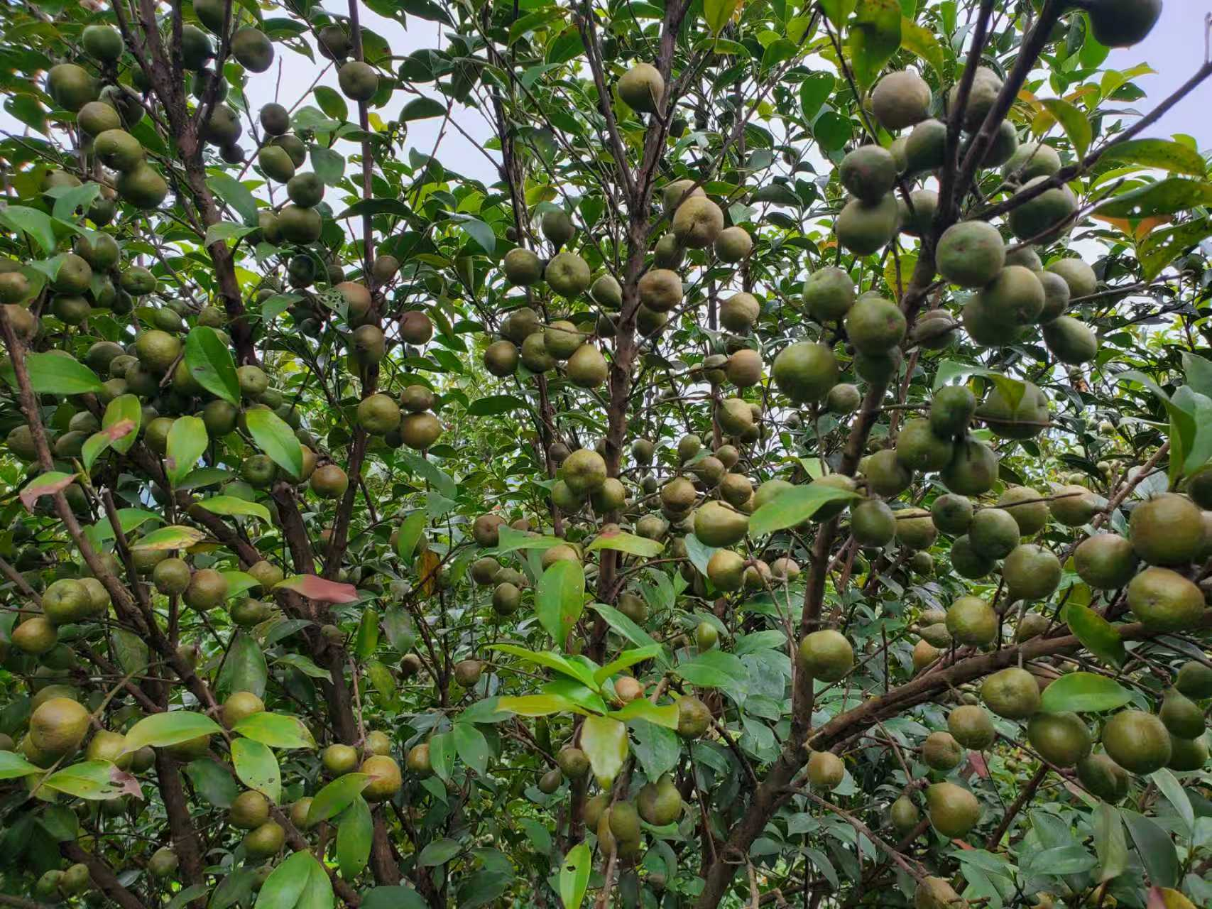 香花油茶是广西自主选育的珍贵良种,优势显著——抗逆性强,造林易、生长快、油脂优、产量高。果实皮薄籽满,鲜果平均含油率达10%,较普通品种提高3%—5%,盛产期亩产茶油可超60公斤,且产量稳定,基本消除了传统油茶的“大小年”问题。