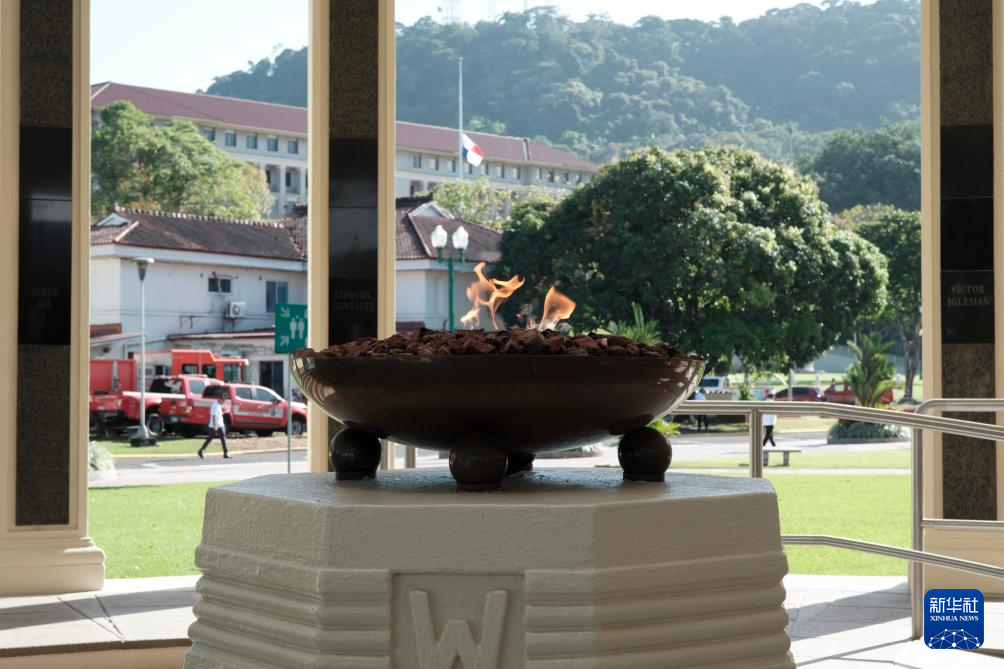 新华社巴拿马城1月10日电(记者许咏政)——在巴拿马运河畔的阿斯卡尼奥·阿罗塞梅纳培训中心,一团“永恒之火”静静燃烧,纪念62年前巴拿马“护旗运动”的烈士。21根立柱环绕火焰,刻有当年牺牲的21名青年名字,象征他们的英勇与牺牲。
