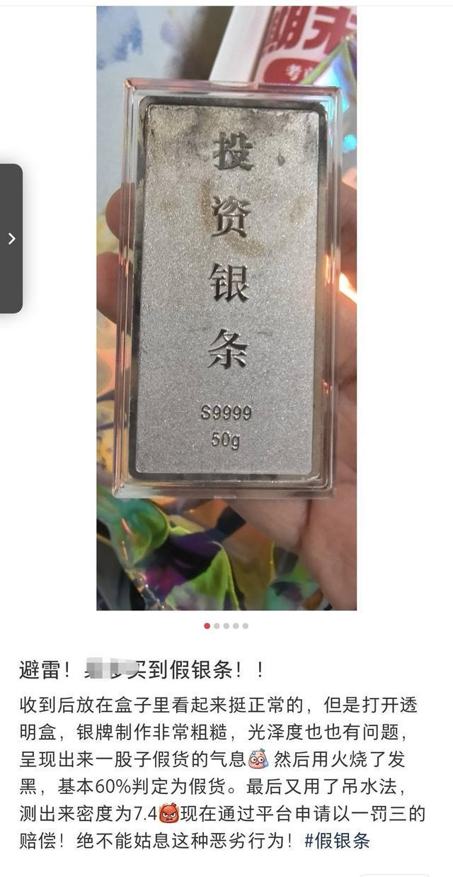 记者梳理微博、小红书、抖音等社交平台的相关话题发现,有许多关于网购白银遭遇骗局的吐槽,相关话题下的留言、分享累计超千条。发帖者既有试水小额投资的普通消费者,也有投入数十万的资深投资者;遭遇的问题除了假货泛滥、延迟发货,还包括货不对板、鉴定证书造假、平台售后推诿等。不少网友在评论区分享维权经验,也有人无奈表示“吃一堑长一智,再也不敢网购贵金属”。